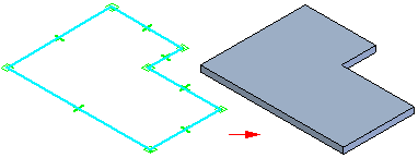 对于同步建模环境中的后续特征,草图可以是开放的,也可以是闭合的。如果草图是开放的,则平板的边必须使草图闭合以形成草图区域。当选择拉伸手柄时,会自动添加后续特征。