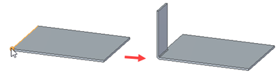 材料在外 - 指定将与材料厚度相等的材料添加到选定边以创建弯边。零件的整体长度将增加,增幅为材料厚度。