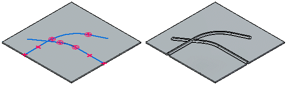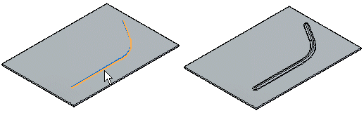 当构造多个不相连的加强筋时,系统会在路径查找器、特征轮廓和钉中为每个不相连的加强筋创建一个条目。加强筋无法展平而且无法跨越折弯。