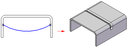 在使用“用户绘制轮廓”选项时,还可以绘制构造跨越两个折弯或跨越非线性折弯的