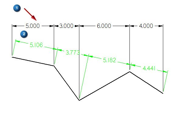 选择“主页”选项卡 →“尺寸”组 →“智能尺寸”命令,然后选择一条线 (1)。