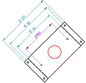放置一个尺寸来测量物理或隐含中心线与另一个元素或关键点之间的距离,然后将该距离乘以二,并将该值显示为直径。