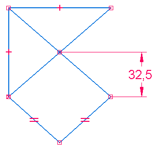 有时需要放置到两个元素的交点的主动尺寸。通过对使用点命令创建的轮廓点标注尺寸,可以执行此操作。