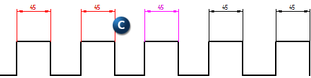 在下图中,所选的尺寸介于对齐集中的其他尺寸之间。将光标移到其他尺寸上方时,可显示将包含在新建对齐集 (C) 中的尺寸。