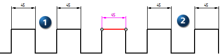 如果在快捷菜单中选择拆分对齐集后单击尺寸,将导致该尺寸单独出现,每侧有一个对齐集(1、2)。