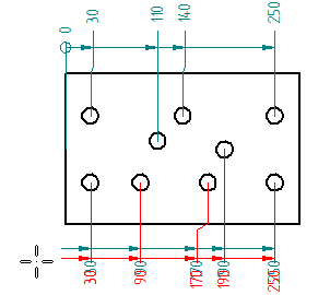引用公共原点并沿同一方向对齐的坐标尺寸具有相同的对齐集的成员关系。一个对齐集的成员可以独立于另一个对齐集调整方向和操控。