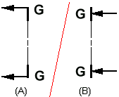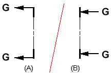 当切割平面视图方向线端符被设置为背向切割平面时,文本的位置如 (A) 所示。