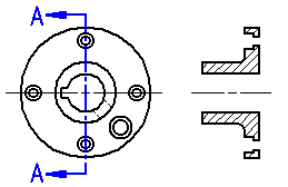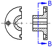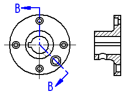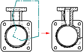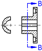 进一步来说,如果要旋转一个典型的剖视图和一个只显示剖面剖视图,用典型剖视图 (A) 可看到零件的一半,但用只显示剖面 剖视图 (B) 时只能看到零件的薄片。