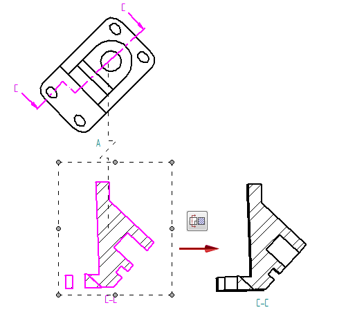 仅剖面 将简单剖视图更改为旋转剖视图,或将旋转剖视图更改为简单剖视图。