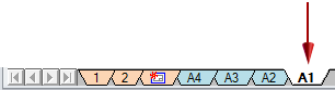 示例:在本例中,当前文档包含三个背景图纸 (A1-Sheet, A2-Sheet, A3-Sheet)。从 A1-Sheet 选项卡中选择命令,然后浏览到包含四个背景图纸(A1-Sheet、A2-Sheet、A3-Sheet 和 A4-Sheet)的模板文件。