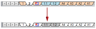 图纸页标签 1 - 更改 2D 模型标签、背景图纸页标签,以及备选工作图纸页标签组的图纸页标签颜色。