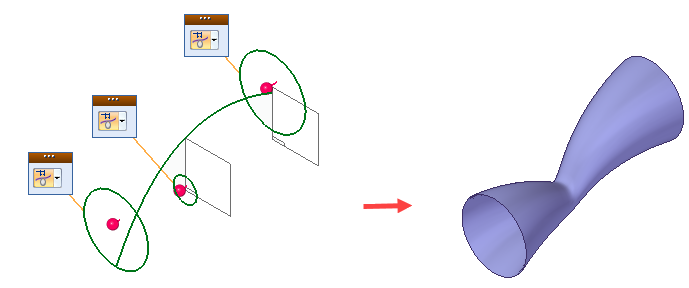 定义多条路径曲线或多个横截面时,每条路径曲线必须是相切元素或边的连续集合。