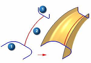 通过沿着您定义的路径 (2) 拉伸一个或多个横截面 (1) 来构造曲面。
