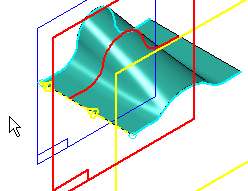 可以使用命令条上的插入草图步骤将新草图添加到蓝面特征中。通过使定义的参考平面与蓝面特征相交来创建新草图的几何图形。不必自行创建草图几何元素。当插入草图时,新几何元素创建为 B 样条曲线。如果希望新几何元素包含直线、圆弧或圆,则必须在蓝面命令之外手动创建新草图。