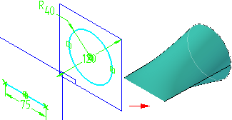 如果在顺序建模环境中使用蓝面并借助使用蓝点选项插入草图,那么还可以通过“选择工具”和蓝点编辑命令条编辑蓝点的位置来修改蓝面特征。当移动蓝点时,由蓝点控制的草图部分将会更新,蓝面的相同部分也会更新。