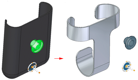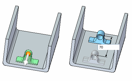 您选择要复制的几何体后,将显示方向盘。方向盘的位置和方向得以记录。方向盘的位置是相对于选定几何体的,而方向是相对于源文档记录的。
