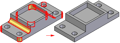 使用“删除倒圆”命令 从模型中删除倒圆。可以使用此命令删除在 青翼 CAD 中使用特征命令构造的圆柱面和锥面,或从其他应用程序导入的模型上的圆柱面和锥面。