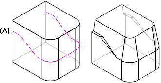 从分型线:您可以选择一条分型线 (A) 来创建拔模。