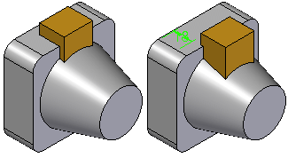 在装配环境中操作时,可以关联方式选择装配中其他零件上的关键点以定义起点和终点。在需要参照装配中的另一零件对面进行重新定位时,这非常有用。