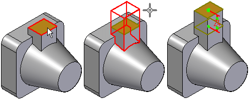 在“选择面步骤”中,使用命令条上的选项来指定是要移动单个面、特征还是整个体。在移动特征或体时,可以在图形窗口中选择面,或使用“路径查找器”。