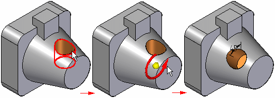 使用“旋转面”命令 将零件上的选定面围绕您定义的轴进行旋转。使用命令条上的选项来指定是要旋转所选的单个面、构成特征的面的集合还是整个体。可以通过选择曲面几何体(如圆柱面)或通过选择两个关键点来定义旋转面的旋转轴。