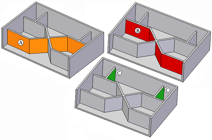 选择段的一个面进行编辑时,只有一个网格筋段 (C) 会更改。