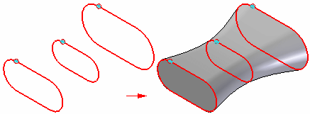 通过装配一系列横截面构造拉伸。可使用草图或现有特征的边定义横截面。横截面必须是闭合元素。