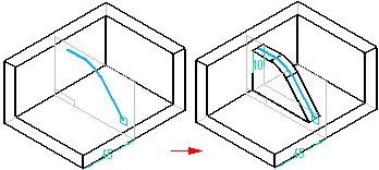 | 步骤 3. | 范围步骤 - 将草图元素的端部延伸至其与零件相交为止的选项。 |