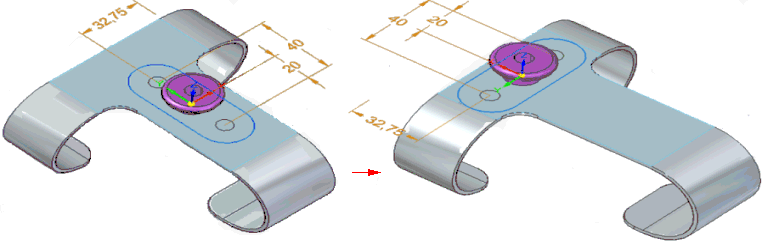 如果将其他库成员放置在与原始成员相同的面上,则可能要避免将两个副本彼此重叠。如果为参考外部元素的尺寸选择相同的边,则第二个成员将放置在第一个成员的正上方。这可能会导致特征失败,但可以通过以后编辑特征的尺寸来修复它。
