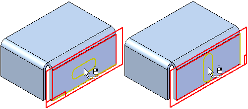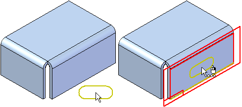 成员的轮廓与光标相连,以使您可以将特征定位在近似所需的位置。在平面或参考平面上移动光标时,特征的轮廓根据轮廓平面的 x 轴确定自身的方向。
