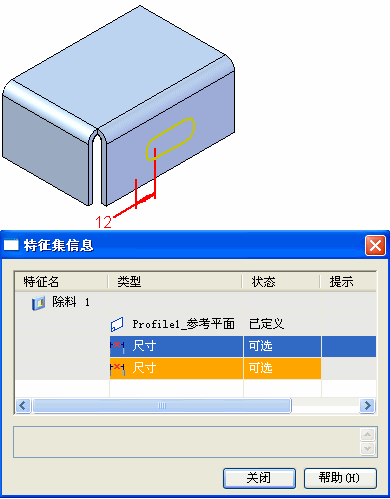 可以创建包含多个基于轮廓的特征的库成员。对于此类成员,每个基于轮廓的特征的参考平面在特征集信息对话框中都被捕捉为必需元素。在放置时,必须重新定义库成员中每个特征的轮廓平面。