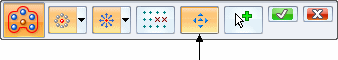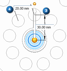 | 步骤 7. | 阵列特征的原点默认为质心。使用方向盘,您可以修改原点、定义第一个阵列行的方向和编辑间距值。也可以单击编辑轮廓手柄修改阵列区域。 |
