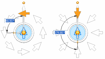 此选项提供对径向事例方位的控制。选中此选项后,方向盘会改变且在环面中将显示一个箭头。此箭头可确定事例的方位。
