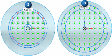 “实例计数间距”选项提供对每个环中事例数量的控制(计数框 A)。事例间的径向间距由 (B) 值框所控制。