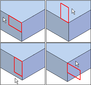 添加止口或凹槽特征的第一步是指定要将特征添加到其上的边。可以个别地选择边,也可以选择一连串边。必须连接这些边。