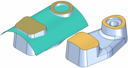 替换零件上的选定面。替换面可以是构造曲面、参考平面或零件上的其他面。替换多个面时,被替换的面不能相互接触。