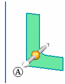 单击以在草图元素或模型边上放置旋转手柄 (B)。