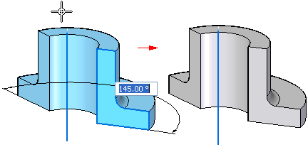 要准确定义范围,选择一个关键点,或在动态编辑框中键入角度值,然后按 Enter 键。对于小于 360 度的值,请定位光标以定义您想要在其中构造特征的草图侧。