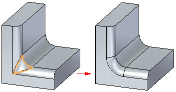 右键单击两个或多个交互式倒圆之间的倒圆补片,然后选择“对倒圆重排序”。