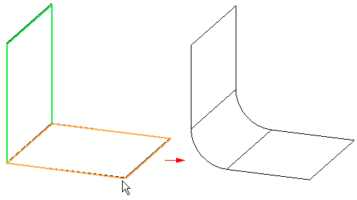 在顺序建模环境中使用倒圆,可在边之间、面之间或二者的组合之间倒圆。
