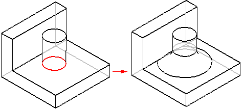 此选项将倒圆修改为沿陡峭边修整倒圆,保持原始边不变。