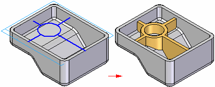 可以通过绘制几何体草图来构造网格筋,以此作为零件的基本特征。