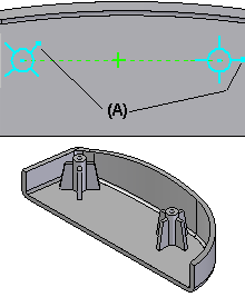 当螺钉柱特征包含多个轮廓时,可以为特征中的每个轮廓定义唯一的旋转角。螺钉柱轮廓的分支之一有一点 (A) 来指示轮廓的旋转角。