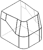 为了避免在绕着分型线或分型面旋转时添加额外的面,可以使用阶梯拔模选项。例如,使用如图所示的分离曲线时,阶梯拔模选项会根据需要添加台阶,以使斜面保持不变。