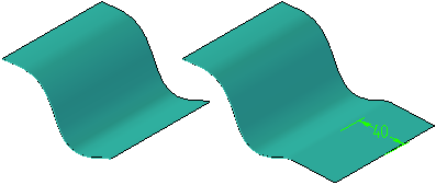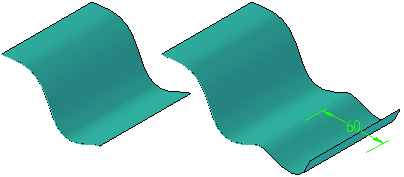 指定曲面的延伸部分将为输入面的反射。此选项对于解析曲面不可用。