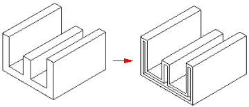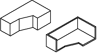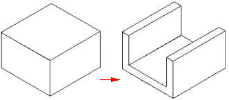 可以对一个零件执行多次薄壁操作。在某些情况下,您会发现使用多次薄壁特征比使用基于轮廓的特征更易于构造零件。例如,可以对一个立方体执行薄壁操作来创建托架。