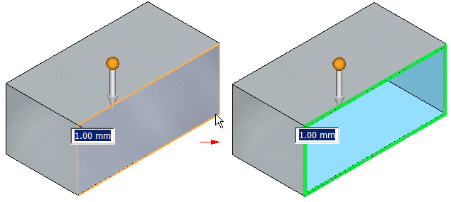 键入公共壁厚度,然后单击箭头定义要应用厚度的那一侧。