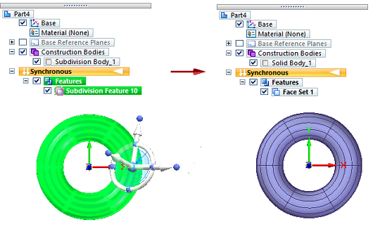 可以将常用的细分形状存储在特征库中,以便随时使用。将细分形状添加到另一模型时,可以在同步模式下定义其位置,但特征会在顺序模式下自动放置在原始位置。