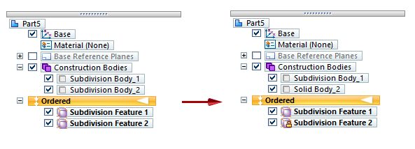 可以在细分建模环境以外在顺序和同步模式下复制和粘贴细分特征。整个特征在路径查找器中将作为新的细分特征复制。