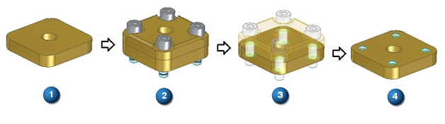 “减去”命令带有“尽可能创建同步建模减去”选项。如果创建了顺序建模减去,零件间复制的曲面将放置在目标体中。在顺序建模减去中,也有一个选项可保持零件间链接。